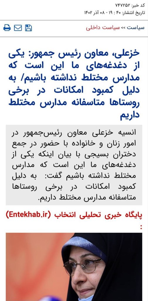 هر روز با کابوس از خواب می پرم ،وقتی بیدار میشم اولش خوشحال میشم که هر چی دیدم کابوس بوده،ولی وقتی میام اوضاع مردم را می بینم ،اینهمه فاجعه _ فقر ،اعدام ،تبعیض ،خودکشی،تن فروشی … ظلم ظلم ظلم… به خودم میگم ،هر چی تا حالا کابوس دیدم به اندازه این واقعیتها وحشتناک و زجر آور نبوده… انسیه خزئلی: یکی از دغدغههای ما این است که مدارس مختلط نداشته باشیم! #بلوچستان #کرمان #تبعیض