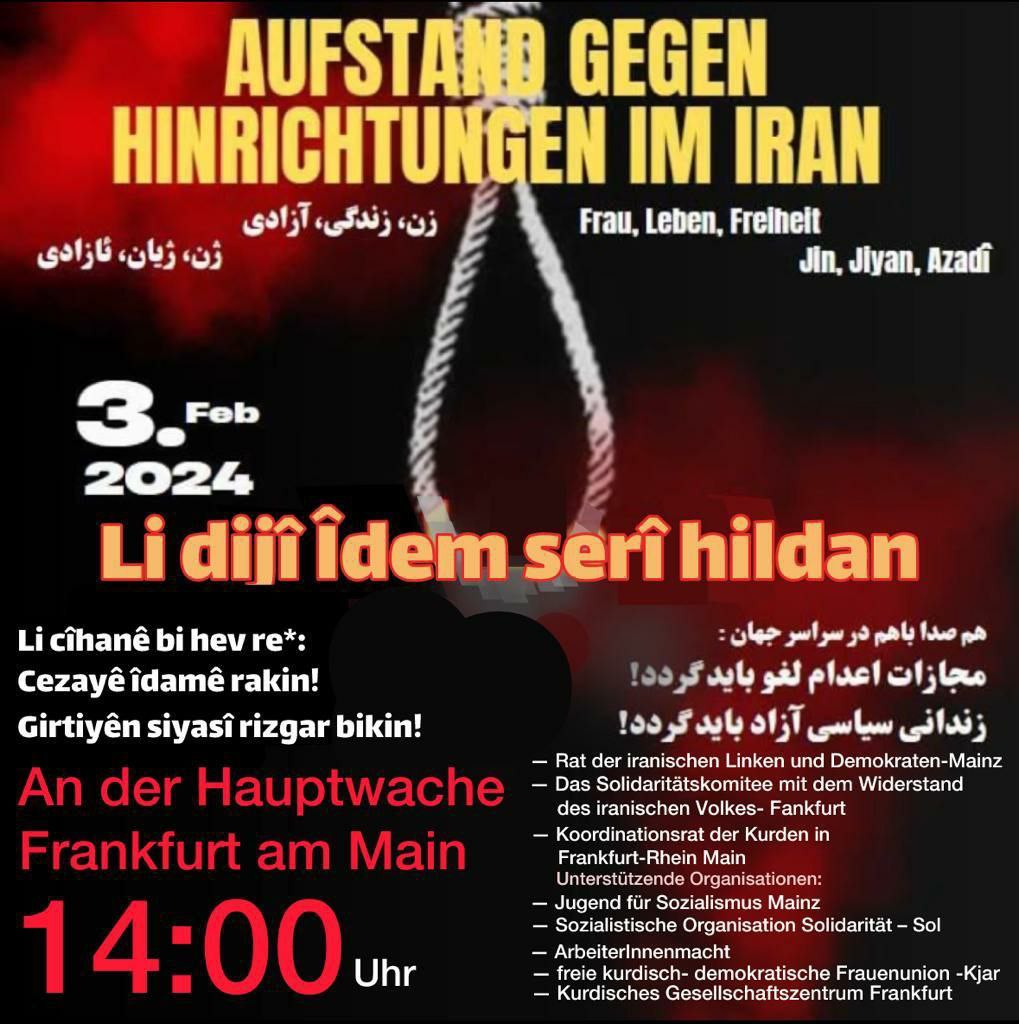 تظاهرات در اعتراض علیه اعدام در ایران در شهر فرانکفورت آلمان همزمان با سومین هفته اعتراض میلیونی علیه طرح حزب نئونازی برای اخراج پناهندگان و مهاجرین