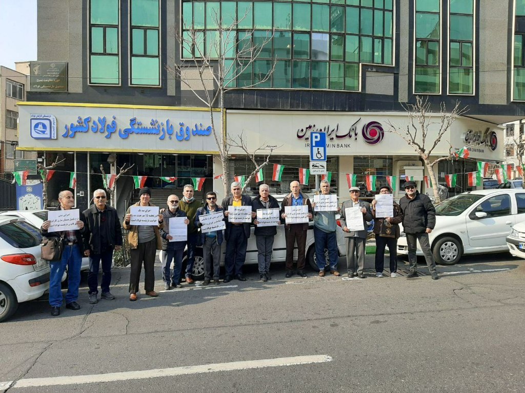 بازنشستگان فولاد روز یکشنبه پانزدهم بهمن در تهران در برابر صندوق بازنشستگی فولاد در خیابان وزرا تجمع کردند