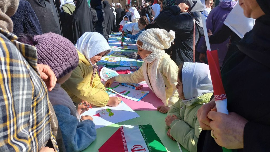 بایکوت مراسم حکومتی ۲۲ بهمن توسط مردم نمین (استان اردبیل) – تنها دانش آموزان را با سرود خوانی ونقاشی کردن به اینجا کشوندند. فقط سپاه ونیروی انتظامی ومدارس بودند، از مردم عادی کسی نبود.