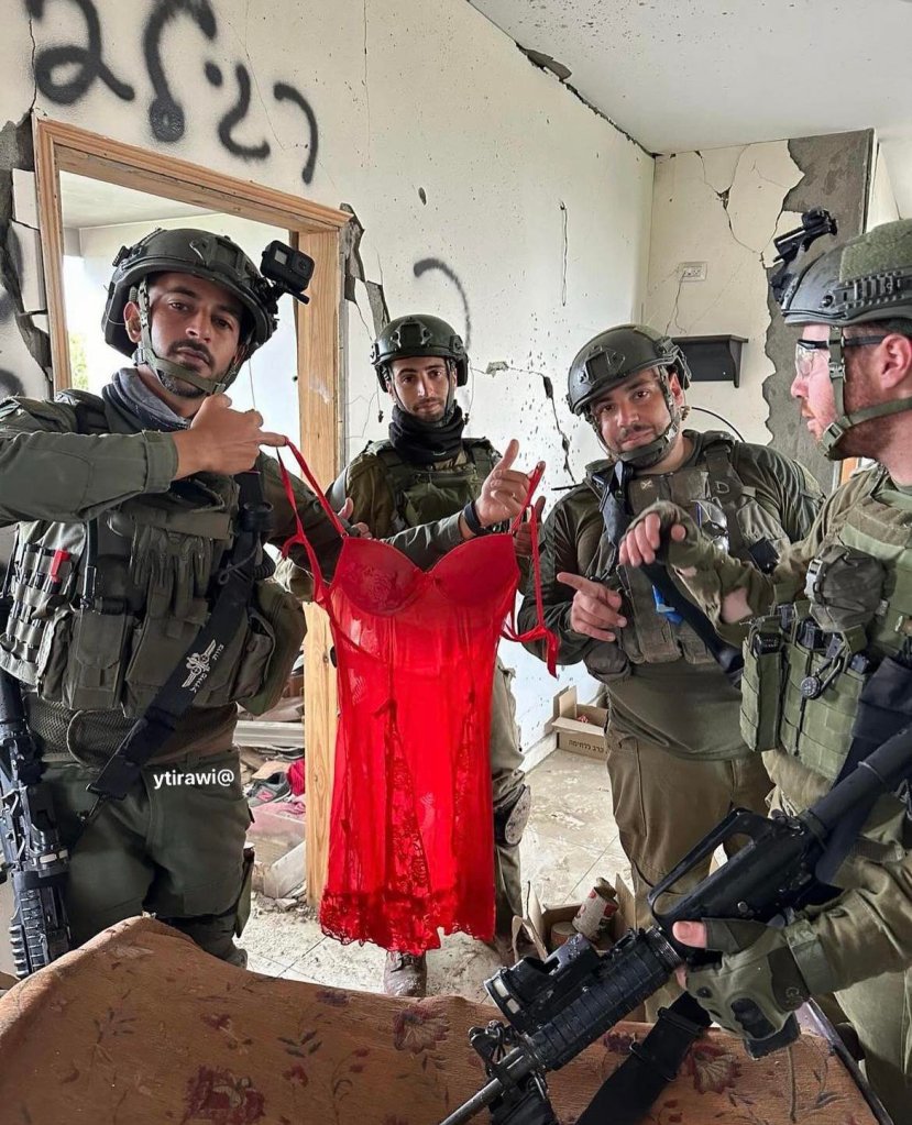 فاشیسم همین است، با زن سر ستیز دارد، تحقیر زن را نوعی افتخار و پیروزی میداند! هدف مشخص است، پس از قتل عام بیش از ۲۰هزار انسان فلسطینی در غزه و بیرون راندن صدها هزار غیرنظامی از خانه هایشان، اکنون فاشیسم به نشانه پیروزی، این چنین به زن تهاجم و تجاوز میکند تا با افتخار پیروزی در جنگ مردانه را نشان دهد.