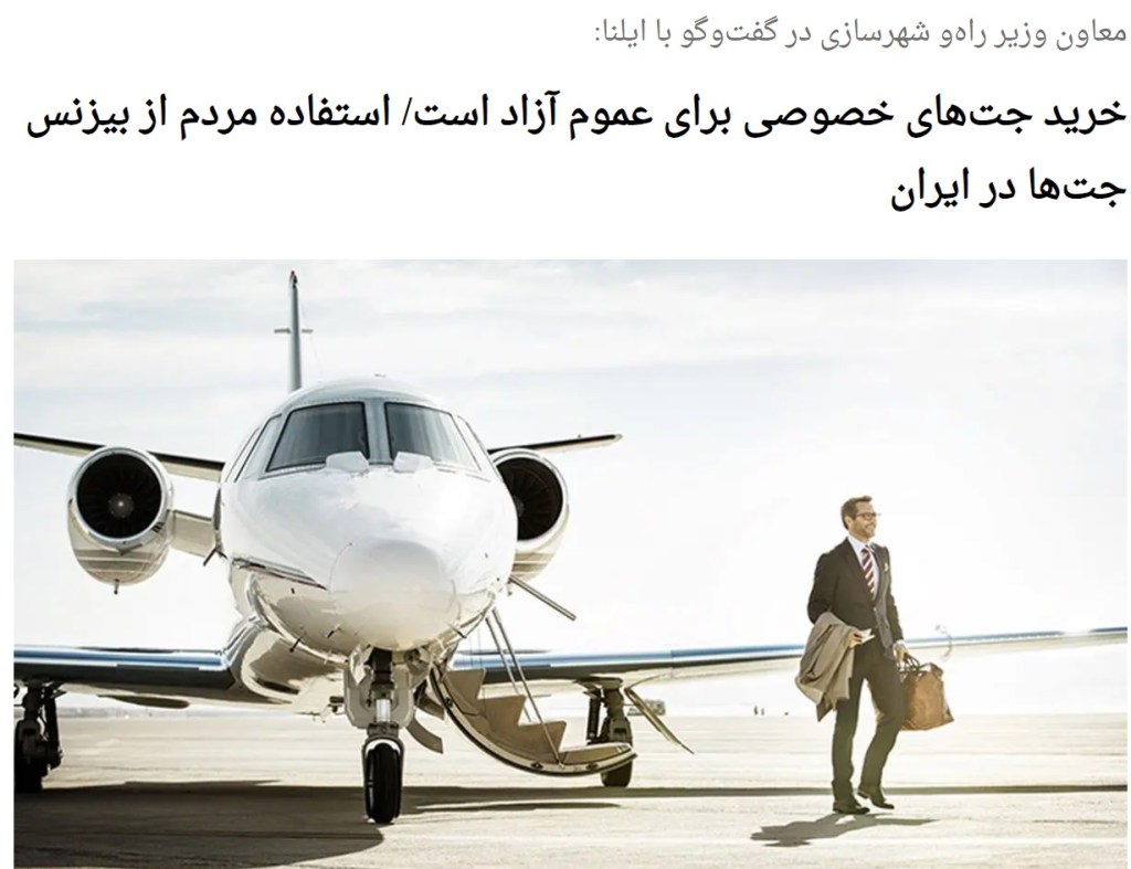 رئیس سازمان هواپیمایی کشوری با اعلام اینکه خرید و فروش هواپیمای بیزنس جت شش و هفت نفره، مانند هوکر و فالکن برای عموم آزاد است، گفت: متقاضیان میتوانند نسبت به خرید بیزنس جت اقدام کنند و افراد متقاضی استفاده از این ناوگان میتوانند با شرکتهای دارنده این هواپیماها وارد قرارداد شوند و در حال حاضر هم بسیاری از مردم از این فضا استفاده میکنند.