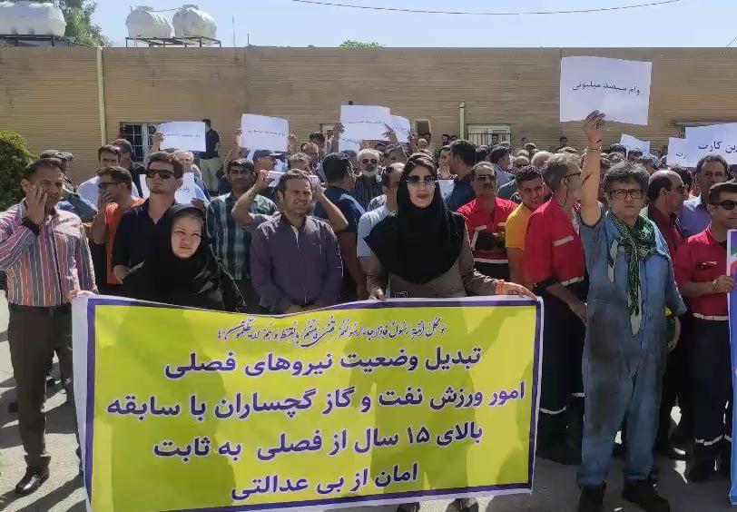 تجمع اعتراضی نیروهای ارکان ثالث شرکت بهره برداری نفت و گاز گچساران