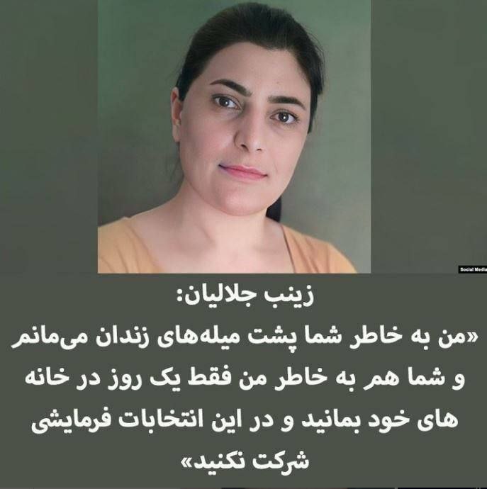 «دلم میخواهد بعد از ۱۶ سال اسارت تنها به خاطر آزادی، از شما مردم سرزمینم خواهشی کنم. همچون سالهای گذشته سر صندقهای رای نروید.» من زینبم! زینب جلالیان، زن مبارز کُرد که ۱۶ سال است، نه! بگذارید دقیقتر بگویم، ۱۶ سال و ۴ روز است که پشت میلههای زندان هستم. شانزده سال است که به خاطر آزادی و حقوق مردم سرزمینم پشت میلههای زندان به سر میبرم. دلم میخواهد بعد از ۱۶ سال اسارت تنها به خاطر آزادی، از شما مردم سرزمینم خواهشی کنم. همچون سالهای گذشته سر صندقهای رای نروید. #زندانی_سیاسی_آزاد_باید_گردد #رای_بی_رای