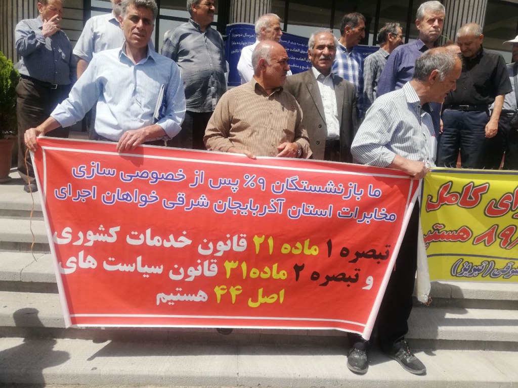 آذربایجان شرقی تبریزتجمع اعتراضی بازنشسته مخابرات در آذربایجان شرقی تبریزدوشنبه ۱۸ تیر