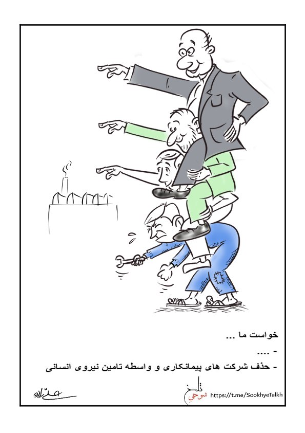 اندر حکایتِ چرائیِ حذفِ شرکت های پیمانکاری (کاریکاتور)
