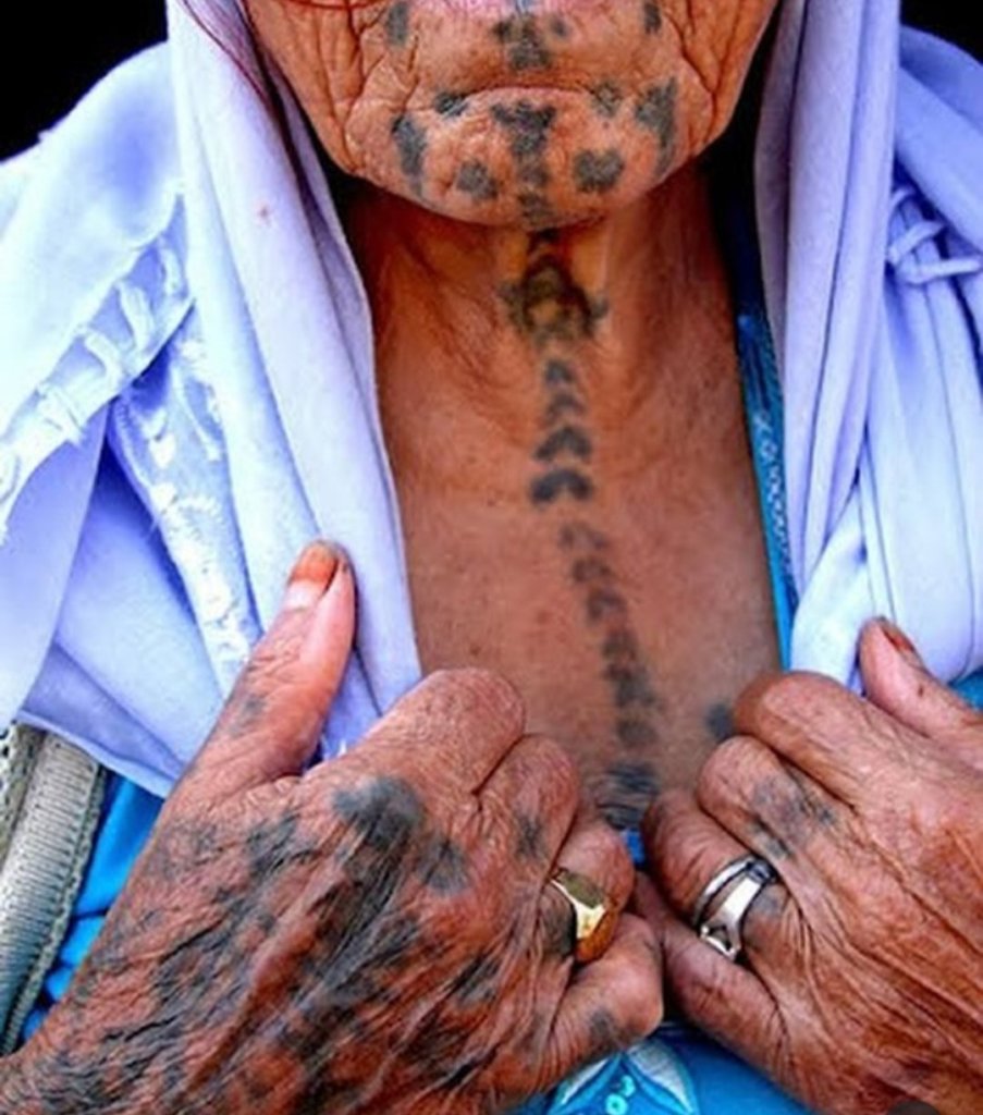 خالکوبی و حنای دست زنان عرب خوزستان، نقش ستارگان که از چانه شروع میشه و تا به شکم میرسه و خالکوبی دست بنام تمیمه که نوعی دستبنده که به انگشتان هموصل میشه!