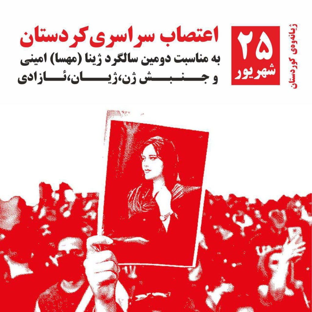 احزاب عمده #کردستان ایران طی فراخوانهای جداگانه از عموم مردم خواستەاند کە روز یکشنبه ۲۵ شهریور، در دومین سالگرد قتل حکومتی #ژینا_مهسا_امینی، نماد خیزش سراسری #زن_زندگی_آزادی اعتصاب کنند و مغازها و بازارها را تعطیل کنند.