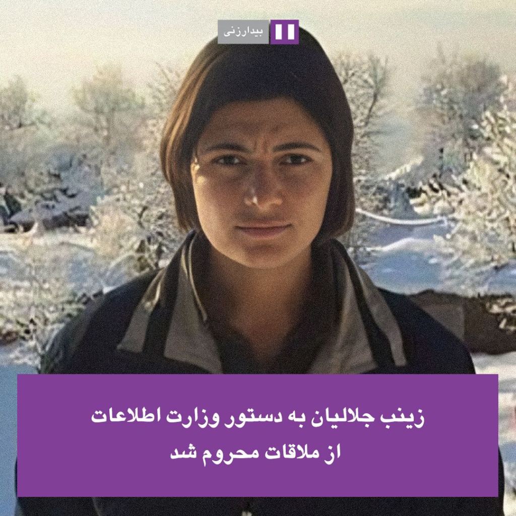 به گزارش شبکه حقوق بشر کردستان: «زینب جلالیان، زندانی سیاسی کورد محکوم به حبس ابد که هفدهمین سال حبس خود در زندان مرکزی یزد را میگذراند، با دستور وزارت اطلاعات از حق ملاقات با خانواده محروم شده است. وی از ۵ سال پیش به دنبال انتقال به زندان یزد تا کنون «تنها یک بار» موفق به انجام ملاقات با خانوادهاش شده است. همچنین هفته گذشته این زندانی سیاسی به دنبال ادامه درد شدید در ناحیه پهلوی سمت راست برای انجام سیتی اسکن به بیمارستان فرخی یزد منتقل و ماموران زندان و پرسنل این بیمارستان علیرغم اعتراض وی، او را مجبور کردهاند که با دستبند و پابند این آزمایش را انجام دهد. اوایل هفته گذشته پس از ارائه درخواست ملاقات زینب جلالیان با خانوادهاش، مسئولین زندان از ممنوعالملاقات شدن وی به دستور وزارت اطلاعات خبر دادهاند. تعدادی از بستگان این زندانی سیاسی که برای انجام ملاقات با وی از ماکو به یزد حرکت کرده بودند پس از اطلاع از ممنوعالملاقات شدن این زندانی سیاسی، در نزدیک شهر اصفهان مجبور به بازگشت به ماکو شدهاند. همچنین روز پنجشنبه ۵ مهر ۱۴۰۳، پس از ماهها تحمل درد پهلوی سمت راست، این زندانی سیاسی با دو دستبند و یک پابند به بیمارستان فرخی یزد منتقل و علیرغم اعتراض وی ماموران زندان و پرسنل بیمارستان این زندانی سیاسی را مجبور کردهاند با دستبند و پابند آزمایش سیتی اسکن را انجام دهد».
