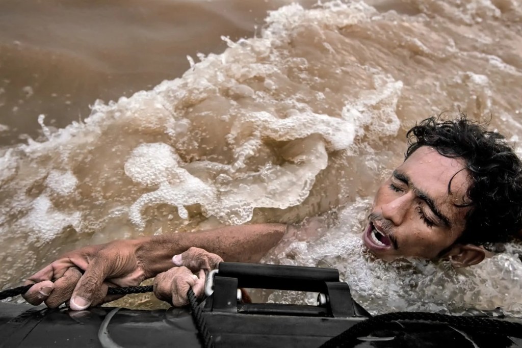 عکسی از مجموعه «سیلاب»/ این مرد به قایق پائولاو همراهانش آویزان شده تا او را نجات دهند