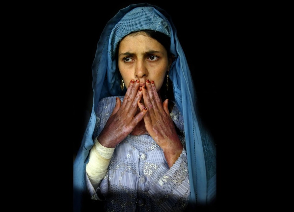 معصومه، ۱۸ ساله و زخمهایش حین بازدید از یک بیمارستانی در هرات، افغانستان/ او به دلیل مشکلات خودسوزی کرده و هفتاد درصد بدنش دچار آسیب شده است/ پائولا درباره دلیل خودسوزی معصومه سوال میکند، اما او جوابی نمیدهد