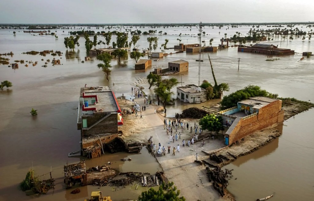 سیل مهیب در پاکستان، منطقه «میرپور بوریرو» در سال ۲۰۱۰/ مردم محاصره شده در صف تخلیه آذوقه هستند
