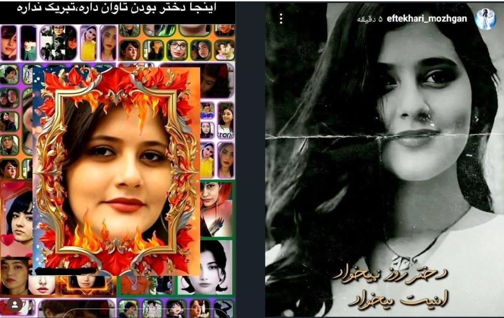مژگان افتخاری، مادر جاویدنام «ژینا مهسا امینی» به مناسبت یازدهم اکتبر، «روز جهانی دختر»، این دو تصویر را در اعتراض به وضعیت دختران ایرانی تحت حاکمیت جمهوری اسلامی منتشر کرد !