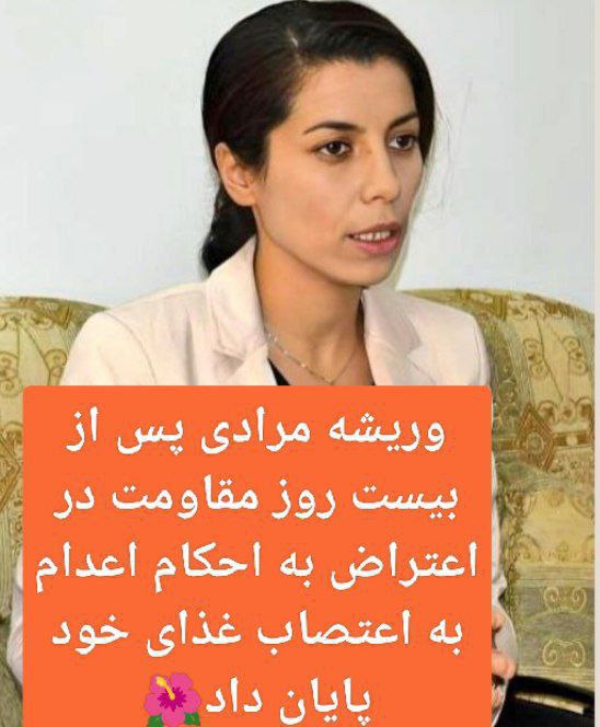 وریشه مرادی، زندانی سیاسی با تشکر از حمایتهای صورتگرفته از او طی این مدت، و با احترام به درخواستهای فعالان مدنی و زنان داخل و خارج از کشور و……..و همبندیهایی که با وجود اختلافات در دیدگاه سیاسی در مساله مخالفت با اعدام همصدا شدند و همچنین شهروندان دغدغهمندی که صدای حمایت و اعتراضشان را بلندتر کردند، به اعتصاب غذای خود پایان داد. وریشه مرادی بهمن ۱۴۰۲ در دادگاه به ریاست ابوالقاسم صلواتی متهم به بغی شد، و در خطر گرفتن صدور حکم اعدام است.