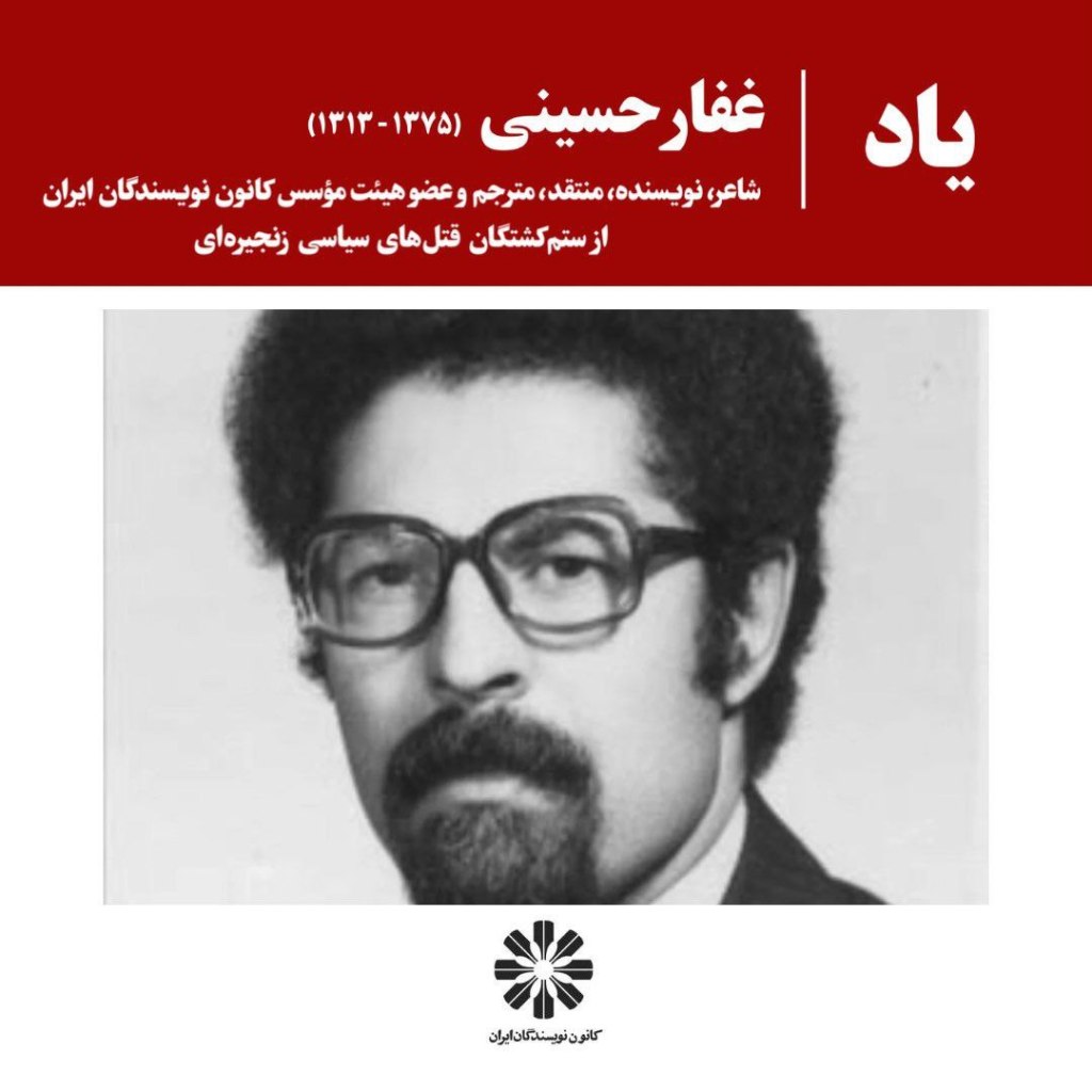 در ۲۰ آبان سال ۱۳۷۵ عمال امنیتی جمهوری اسلامی، شبحوار و کوردلانه به خانهی غفار حسینی خزیدند و این یار وفادار کانون نویسندگان ایران را تبهکارانه به قتل رساندند.