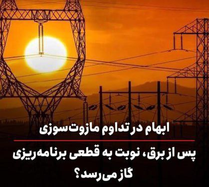 در روزهای گذشته، با قطع برق، گاز نیز در برخی شهرها قطع شد. این سوال مطرح است که آیا نوبت به قطعی برنامهریزی شده گاز خواهد رسید؟ مسئولان اعلام کردهاند که برای حفظ سلامت مردم از مازوت استفاده نمیکنند. مازوتسوزی در نیروگاهها قطع نشد ، برق قطع میشود گاز هم قطع می شود ، چه بهانهای برای قطع گاز خواهند آورد؟ فشار آب نیز به شدت کاهش یافته است و مردم مجبور شدهاند پمپ و منبع آب در خانههای خود نصب کنند. با قطع برق، نه تنها گرمایش نداریم بلکه آب هم نداریم. این قطع برق در واقع به معنای قطع گاز نیز هست، زیرا اکثر خانهها از پکیجهایی استفاده میکنند که با برق کار میکنند.
