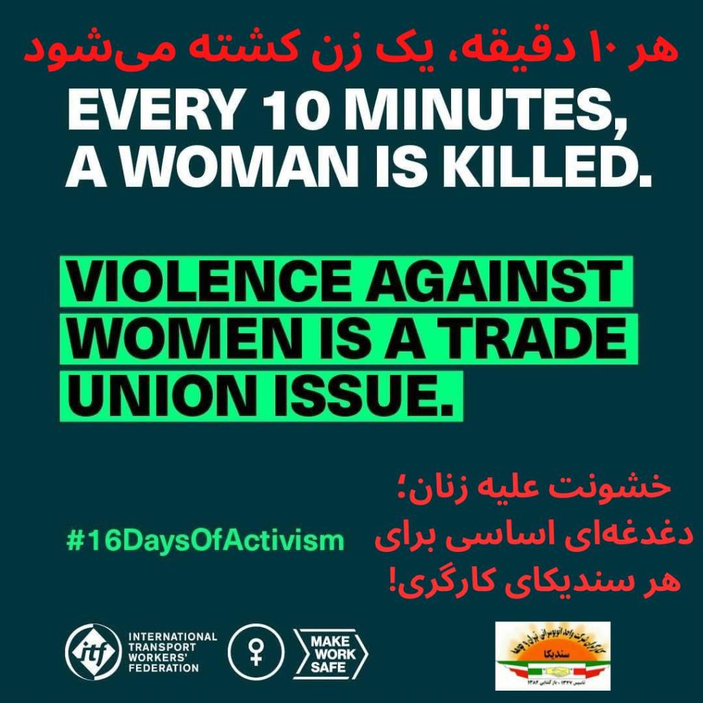 کمپین ۱۶ روز فعالیت علیه خشونت جنسیتی یک حرکت بینالمللی است که هر ساله از ۲۵ نوامبر (۵ آذر)، روز جهانی رفع خشونت علیه زنان، تا ۱۰ دسامبر (۱۵ آذر)، روز حقوق بشر، برگزار میشود و به عنوان یک فراخوان برای اتحادیههای کارگری جهت تشدید تلاشهایشان در این زمینه عمل میکند. تم جهانی سال ۲۰۲۴ این است: «هر ۱۰ دقیقه، یک زن کشته میشود. برای پایان دادن به خشونت علیه زنان متحد شوید.» فدراسیون بینالمللی کارگران حملونقل (ITF) و اتحادیههای حملونقل در سراسر جهان از طریق کمپین، لابی، سازماندهی و مذاکره تلاش میکنند تا خشونت و آزار جنسیتی را در محیط کار و در کل جامعه خاتمه دهند. این تعهد بخشی اساسی از مبارزه جمعی برای کار شایسته، کرامت و برابری برای زنان شاغل در حوزه حملونقل در سراسر جهان است. فدراسیون بینالمللی کارگران حمل و نقل (ITF) بر قطعنامههای کلیدی کنگره ۴۶ام خود که امسال در مراکش برگزار شد، تأکید میکند. این قطعنامهها برای تقویت کمپینجهت از میان بردن خشونت و آزار و بهبود شرایط کاری زنان شاغل در بخش حملونقل تصویب شدند. از جمله: • اتحادیههای عضو از کمپین جهانی «من را با امنیت به خانه برسانید» حمایت کردند تا با خطرات غیرقابل قبول مواجهه شده توسط کارگران حملونقل در مسیرهای رفتوآمد به کار و بازگشت به خانه مقابله کنند. • کنگره متعهد شد موانع سیستماتیکی که زنان را از مشارکت در تصمیمگیری و دسترسی به مشاغل ایمن و شایسته در بخش حملونقل و لجستیک بازمیدارد، از بین ببرد. این اقدام به مناسبت ۲۵ سالگی کمیته زنان کارگر حملونقل ITF انجام شد. • کنگره از اتحادیهها خواست تا کمپین برای تصویب و اجرای مؤثر کنوانسیون توقف خشونت و آزار سازمان بینالمللی کار (ILO C190) را تقویت کنند. اقدامات اتحادیهها: استفاده از C190 برای ایجاد تغییر کنوانسیون ۱۹۰ سازمان بینالمللی کار (C190) به صراحت اعلام میکند که خشونت و آزار با کار شایسته ناسازگار است. این کنوانسیون به خشونت جنسیتی میپردازد و از جذب، نگهداشت و پیشرفت زنان در این صنعت مردسالار حمایت میکند. تا کنون، فقط ۴۲ کشور کنوانسیون ۱۹۰ سازمان بینالمللی کار (ILO) را که مربوط به حذف خشونت و آزار و اذیت در دنیای کار است، تصویب کردهاند. این کنوانسیون که در سال ۲۰۱۹ تصویب شد، اولین استاندارد بینالمللی است که خشونت و آزار و اذیت در محیط کار را به طور جامع مورد بررسی قرار میدهد. برخی از کشورهایی که این کنوانسیون را تصویب کردهاند شامل فیلیپین (اولین کشور آسیایی)، فنلاند، و کشورهای متعددی از آمریکای لاتین و اروپا هستند. اما دولتهایی از جمله آمریکا، روسیه، اسرائیل و ایران تا کنون از تصویب این کنوانسیون خودداری کرده اند. این کنوانسیون تأکید میکند که خشونت و آزار و اذیت یک مسئله حقوق بشری و اجتماعی است و خواستار اجرای استراتژیهای جامع برای جلوگیری، محافظت و پاسخگویی به این معضل در محیط کار میباشد. پایان دادن به خشونت علیه زنان در کل جامعه و زنان شاغل در حملونقل بسیار حیاتی است. #هیچ_بهانهای_نیست خشونت و آزار: یک مسئله مهم در محیط کار است؛ کارفرما در مقابل آن مسئول است؛ یک مسئله ایمنی است؛ یک مسئله برای همه است. #تصویبC190 برای اطلاعات بیشتر، میتوانید به وبسایت های فدراسیون بین المللی کارگران حمل ونقل و سازمان بینالمللی کار مراجعه کنید: