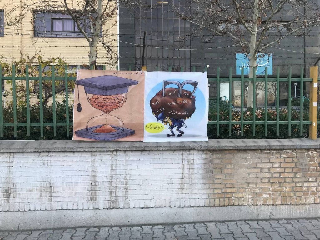 امروز پنجشنبه، بنرهایی کاریکاتوری طنز و در عین حال تلخ، به مناسبت شانزدهم آذر روز دانشجو، در جلوی درب اصلی دانشگاه علوم انسانی مشهد و خوابگاهها نصب شدند. گرامی باد ۱۶ آذر روز دانشجو