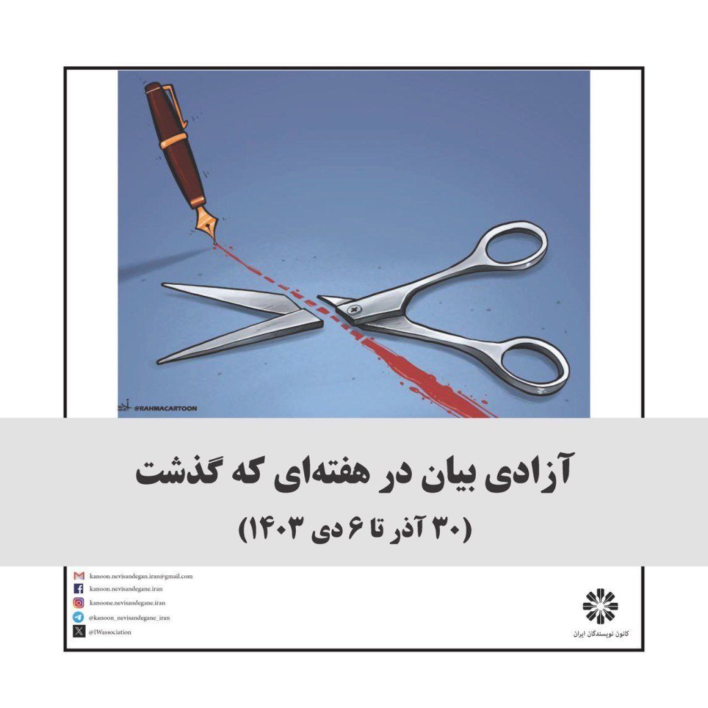 ــ احمد درخشان، معلم و نویسنده، به اتهام «تبلیغ علیه نظام» در شعبهی دوم دادگاه انقلاب کرج به یک سال حبس تعزیری و مجازاتهای تکمیلی محکوم شد.