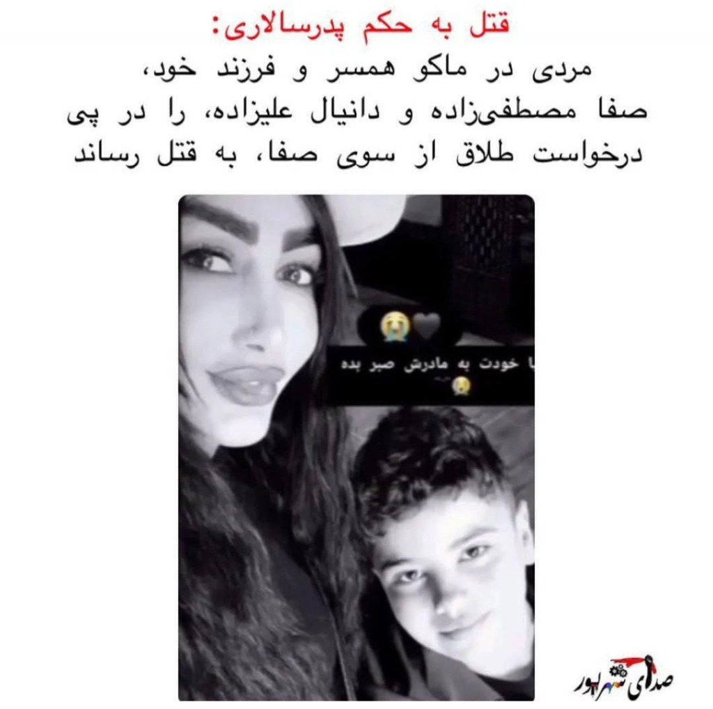 زن جوان ۳۱ سالهای به نام «صفا مصطفیزاده» در شهر ماکو(بازرگان) همراه با فرزندش، به دست همسرش با ضربات متعدد سلاح سرد (قمه) به قتل رسیده است.
