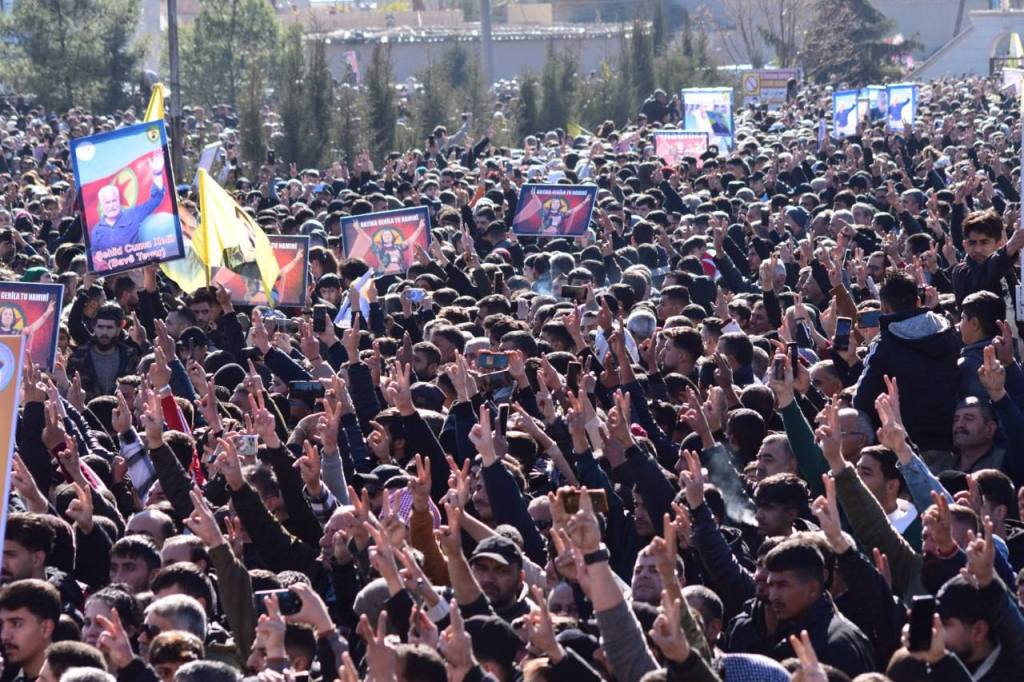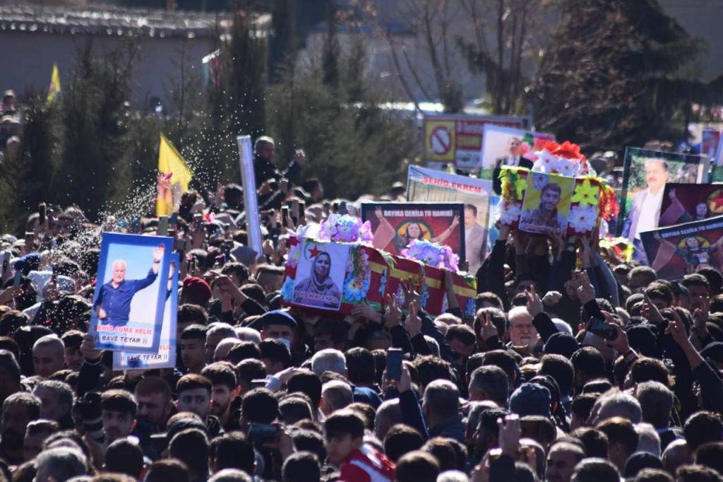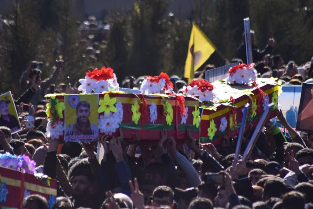 صدها هزار نفر در قامشلو تجمع کردند و با شهدای سد تشرین وداع کردند.
