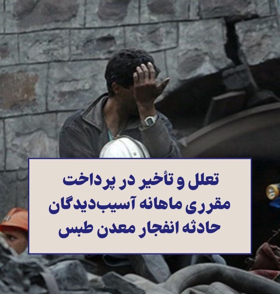 از یک طرف همسرانمان مانند سابق تواناییِ کار کردن ندارند و از طرفی نگرانِ قطع تمام مقرریها هستیم.» انفجار معدن زغال سنگ طبس ۵۲ کشته و بیش از ۲۰ تن مجروح به جا گذاشت. تاکنون پرونده این حادثه خونبار مورد بررسی عادلانهای قرار نگرفته و به آسیبدیدگان به نحوی که مقرر کردهاند غرامت پرداخت نشده. خانواده حادثهدیدگان معدن طبس از پرداخت نشدن غرامت دوره بیماری آسیب دیدگان خبر داده و گفتهاند: «تأمین اجتماعی، تنها غرامتِ ماه مهر را پرداخت کرده است؛ پیگیری کردیم و گفتهاند که غرامتِ آبان را نیز به زودی پرداخت خواهند کرد. ما برای گذران زندگی به این پول نیاز داریم اما تأمین اجتماعی این مبلغ را قطرهچکانی واریز میکند.» به گفته خانوادهها «تأمین اجتماعی هر ماه باید مبلغی به عنوان غرامت دوره بیماری پرداخت کند، در حالی که این مبلغ را با تأخیر بسیار و تنها برای یک ماه پرداخت کرده است.» آنهاتوانایی کار کردن ندارند و اگر مقرری ماهانه به موقع پرداخت نشوند، خود و خانوادههایشان از معیشت وامیمانند.