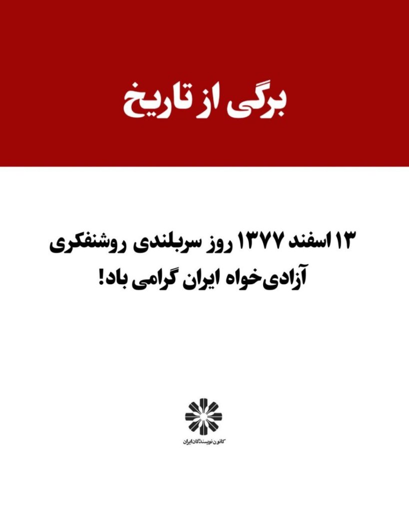 روز ۱۳ اسفند سال ۱۳۷۷ بزنگاهی تاریخی را رقم زد که تا امروز با همهی بگیر و ببندها، تهدیدها، بازجوییها، یورشها به خانهها و مجامع عمومی، به زندان انداختنها و حتی کشتنها و حذف فیزیکی (بکتاش آبتین در دورهی زندان او) همچنان پاییده است.