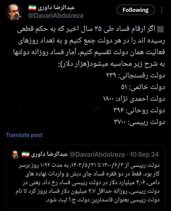آمار خیرهکنندهی دولتهای احمدی نژاد و رئیسی در فساد مالی به اعتراف عوامل وابسته به خودشان