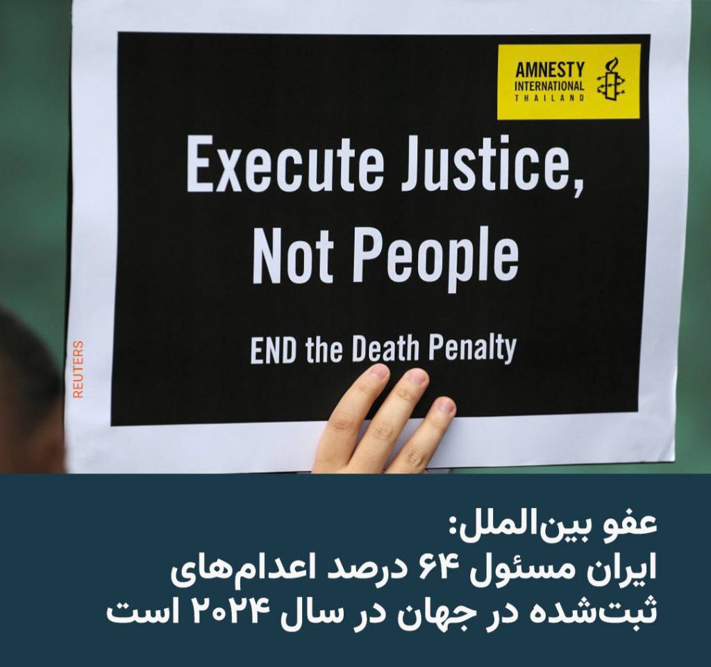 در ایران، ۹۷۲ نفر در سال ۲۰۲۴ اعدام شدند که ۶۴ درصد کل اعدامهای ثبتشده در جهان را شامل میشود. این آمار نشان میدهد جمهوری اسلامی در ایران دستکم ۱۱۹ نفر بیشتر از سال پیشتر اعدام کرده است. آمار ثبتشدۀ اعدامیها در ایران در سال ۲۰۲۳، دستکم ۸۵۳ نفر بود.عربستان سعودی نیز آمار اعدامهای خود را نسبت به سال گذشته دو برابر کرده و عراق نیز شمار اعدامهایش را تقریباً چهار برابر افزایش داده است.