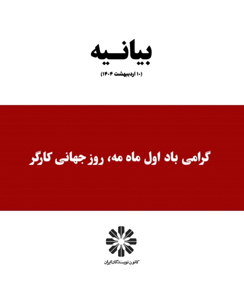 کانون نویسندگان ایران، کانون کارگران فکری، اول ماه مه، روز جهانی طبقهی کارگر را به کارگران جهان، بهویژه کارگران ستمدیده و محروم ایران تبریک میگوید و خود را در آرمان طبقهی کارگر جهانی برای ساختن جهانی بهتر و درخور تبار انسان شریک میداند.