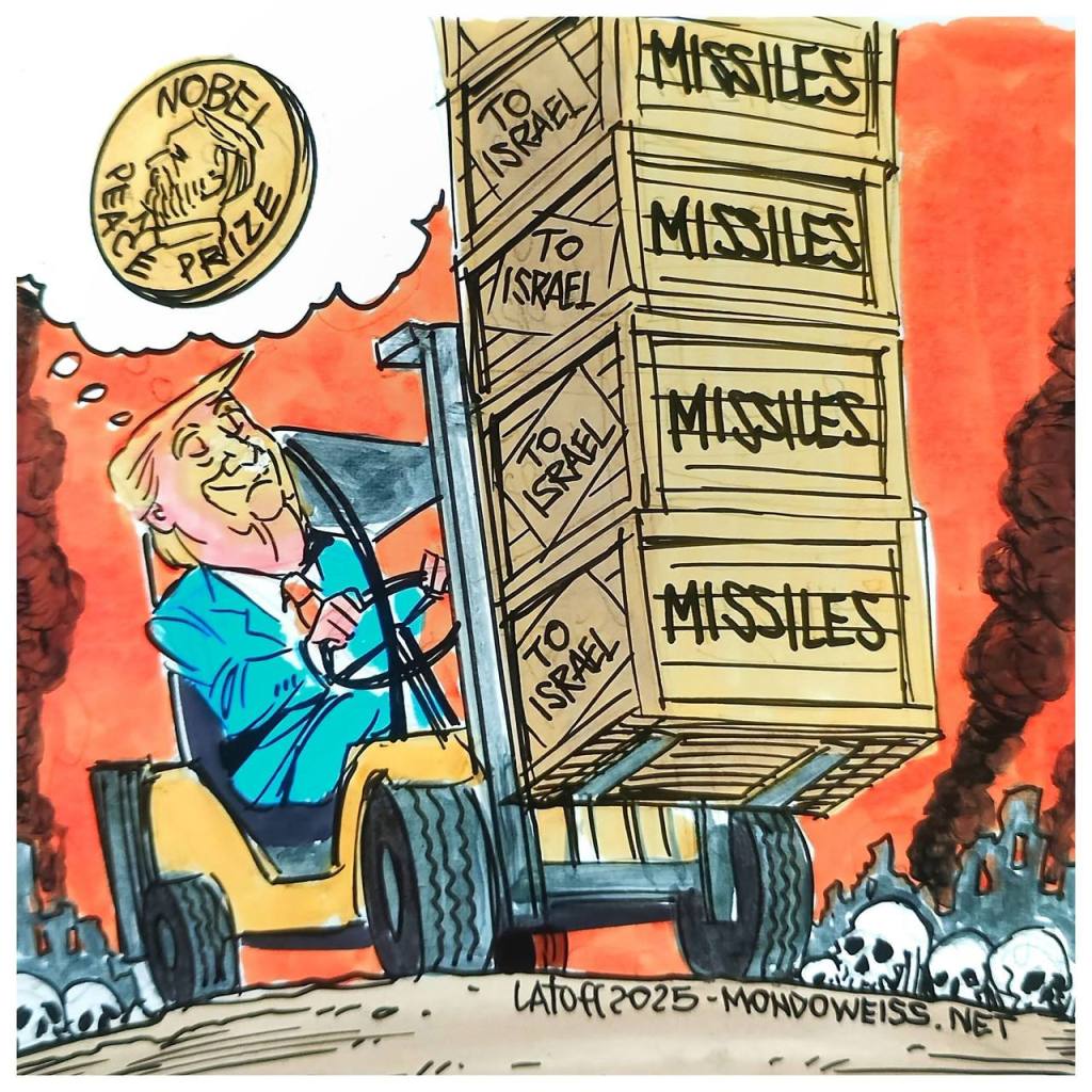 نتانیاهو ترامپ را برای جایزه صلح نوبل کاندید کرد (کاریکاتور)
