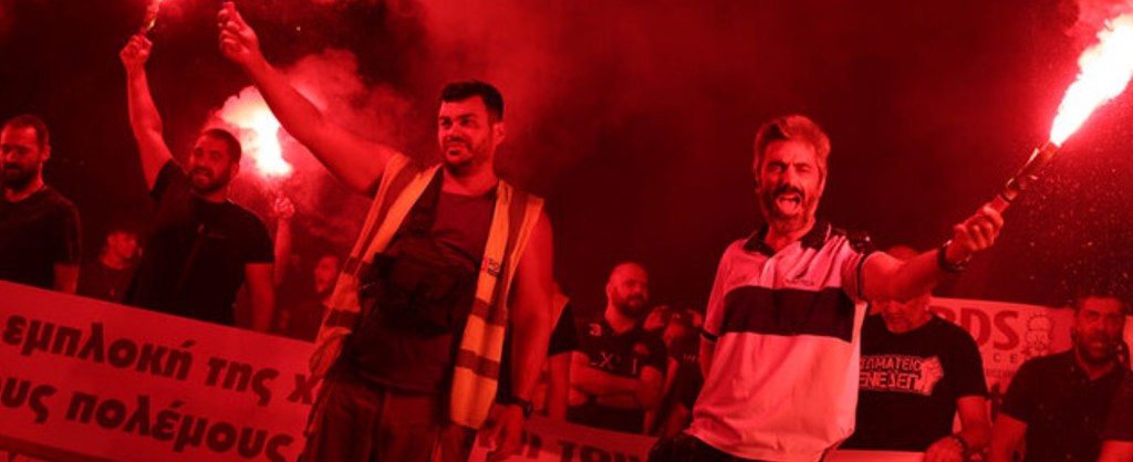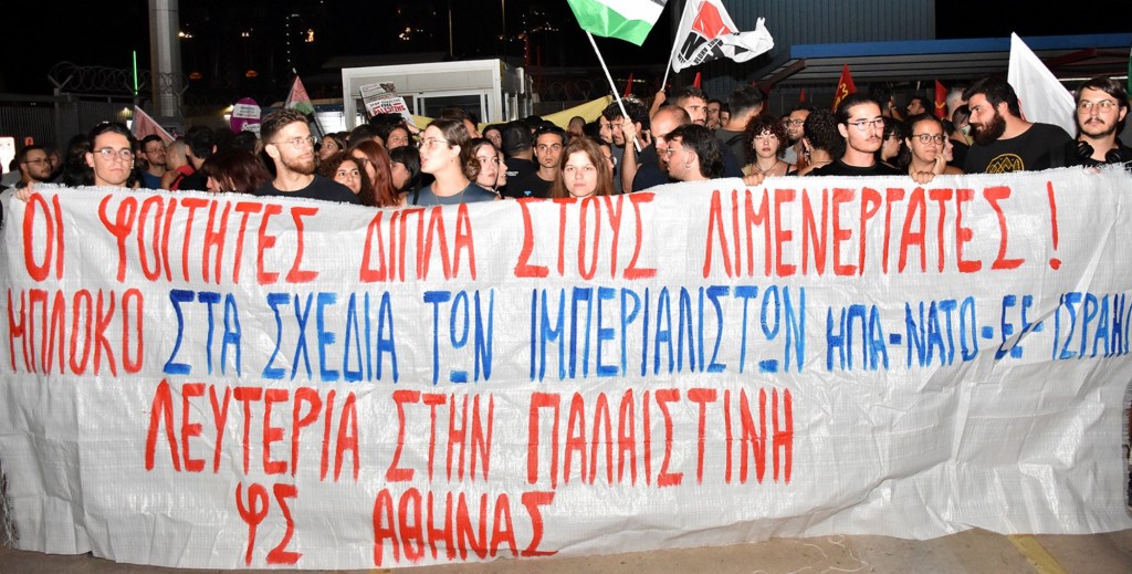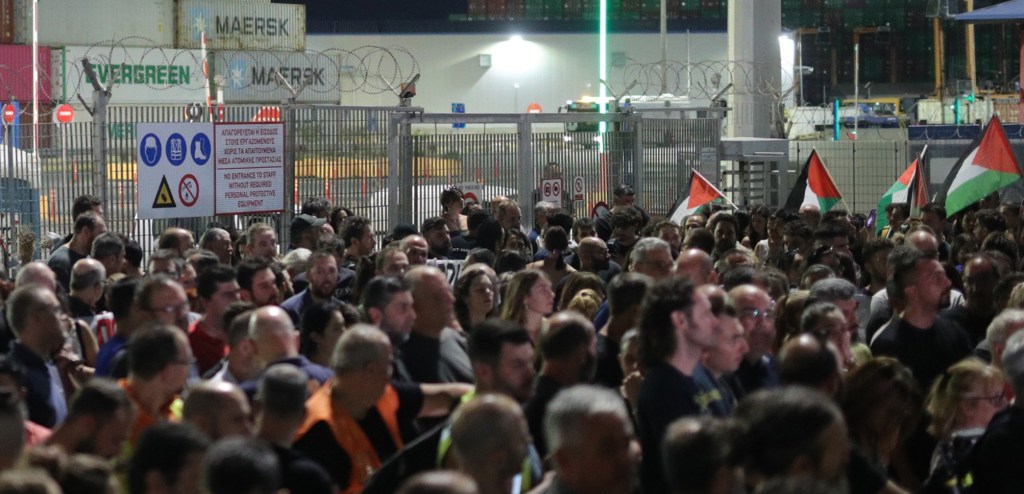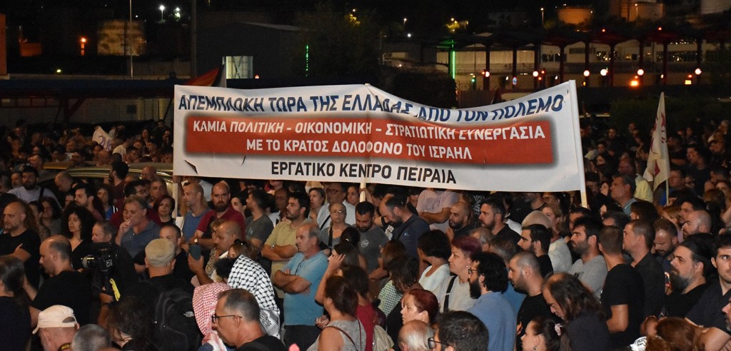 به گزارش فدراسیون جهانی اتحادیه های کارگری کارگران بارانداز، کارگران و هزاران نفر بار دیگر به فراخوان اتحادیه کارگران باراندازِ «انیدپ» در کاسکو، مرکز کار پیرائوس و بسیاری دیگر از اتحادیهها و انجمنهای آتن پاسخ دادند و دیواری از همبستگی با مردم فلسطین و علیه دخالت یونان در جنگ امپریالیستی برپا کردند.