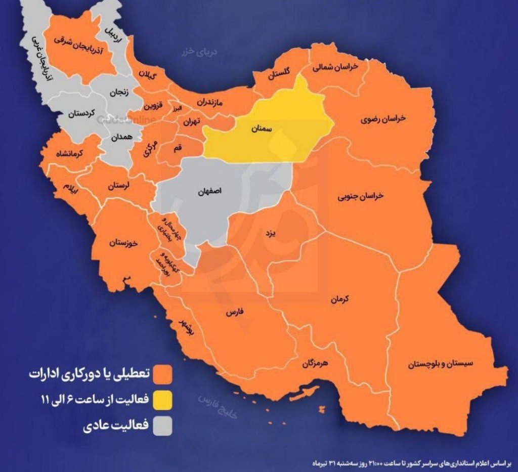 نقشه نهایی تعطیلی ادارات کشور در روز چهارشنبه ۱ مردادماه