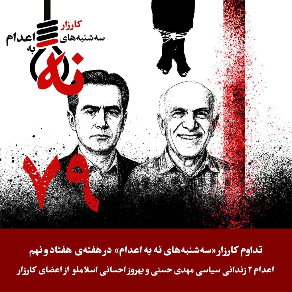 اعدام ۲ زندانی سیاسی مهدی حسنی و بهروز احسانی اسلاملو از اعضای کارزار سهشنبههای نه به اعدام