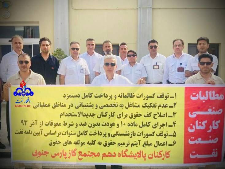 کارگران و کارکنان شرکت نفت، امروز ۲۰ مرداد ۱۴۰۴، کارگران نفت و گاز در بسیاری از مرکز نفت و گاز جنوب کشور از جمله در شرکت فلات قاره جزیره لاوان، مجتمع گازی پارسجنوبی SPGC