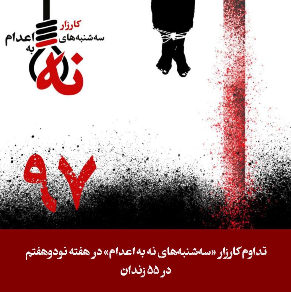 کارزار «سهشنبههای نه به اعدام» روز سهشنبه ۱۱ آذر ۱۴۰۴ در هفته نودوهفتم در ۵۵ زندان زیر در اعتصاب غذا میباشد:
