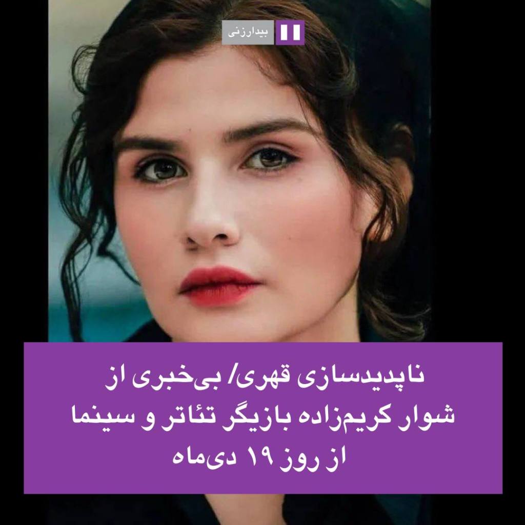 شوار کریمزاده، بازیگر تئاتر و سینما روز ۱۹ دیماه بازداشت شده است. «خانه سینما» طی گزارشی اعلام کرد که بنا بر اطلاعات دریافتی از روز ۱۹ دیماه، خانواده و نزدیکان، هیچ اطلاعی از نهاد بازداشت کننده و محل نگهداری او ندارند. این وضعیت نگرانی پیرامون سلامت و جان او را افزایش داده است.