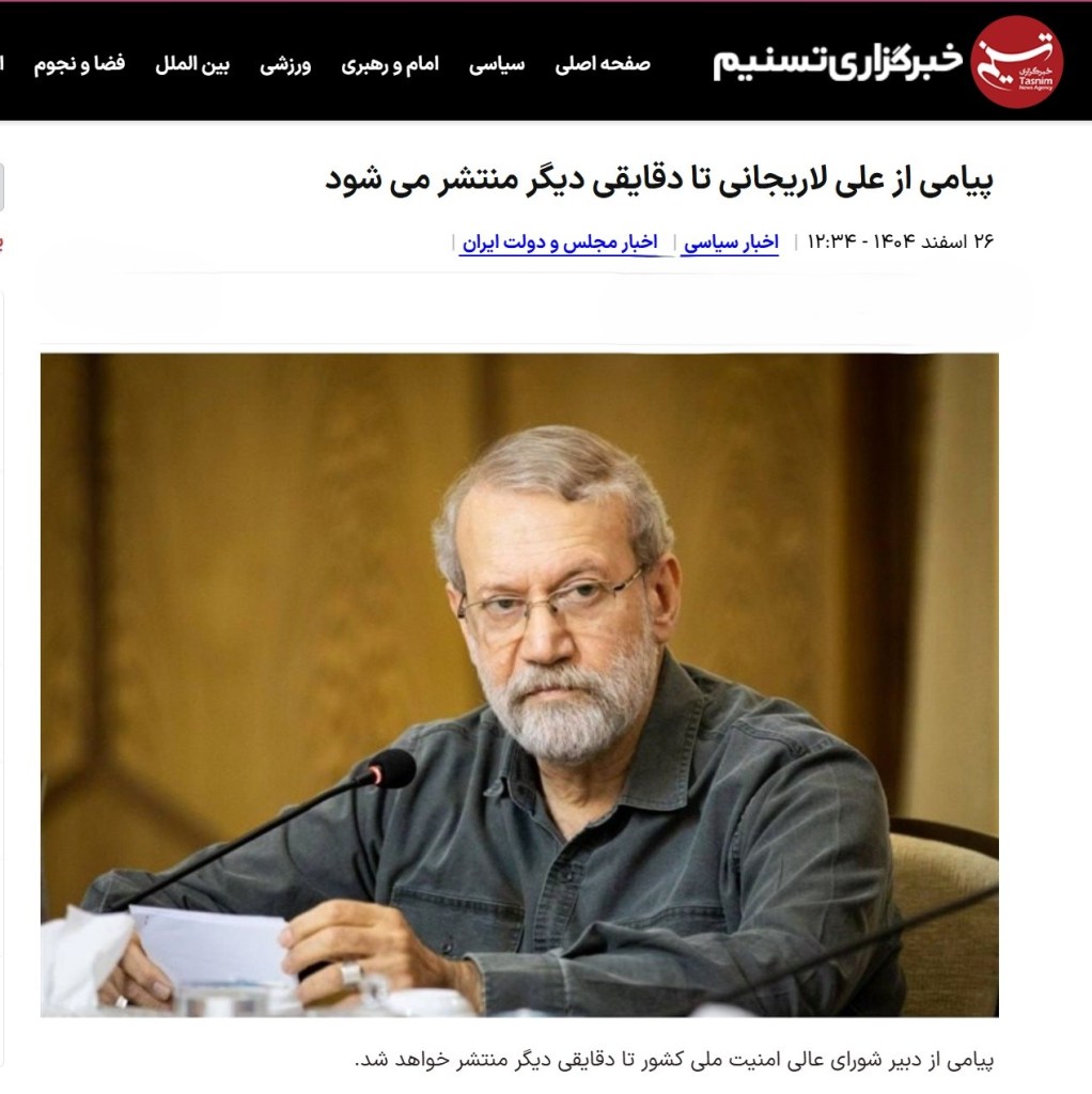 در همین حال رسانه ای نزدیک به سپاه در واکنش به این خبر نوشت پیامی از دکتر علی لاریجانی، دبیر شورای عالی امنیت ملی کشور تا دقایقی دیگر منتشر خواهد شد.